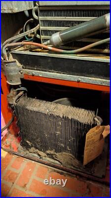 The compressor is working and it keeps the contents cold. The coin operation is not functional but I believe most or all of the parts are there to repair it. The dispensing mechanism was working but is now stuck but should be repairable by a competent technician. There are some minor dings and scratches but considering its age it's in pretty good shape.Originally designed for small bottles it dispenses 12 OZ cans too. The machine is great because of its small size it will fit in any home.